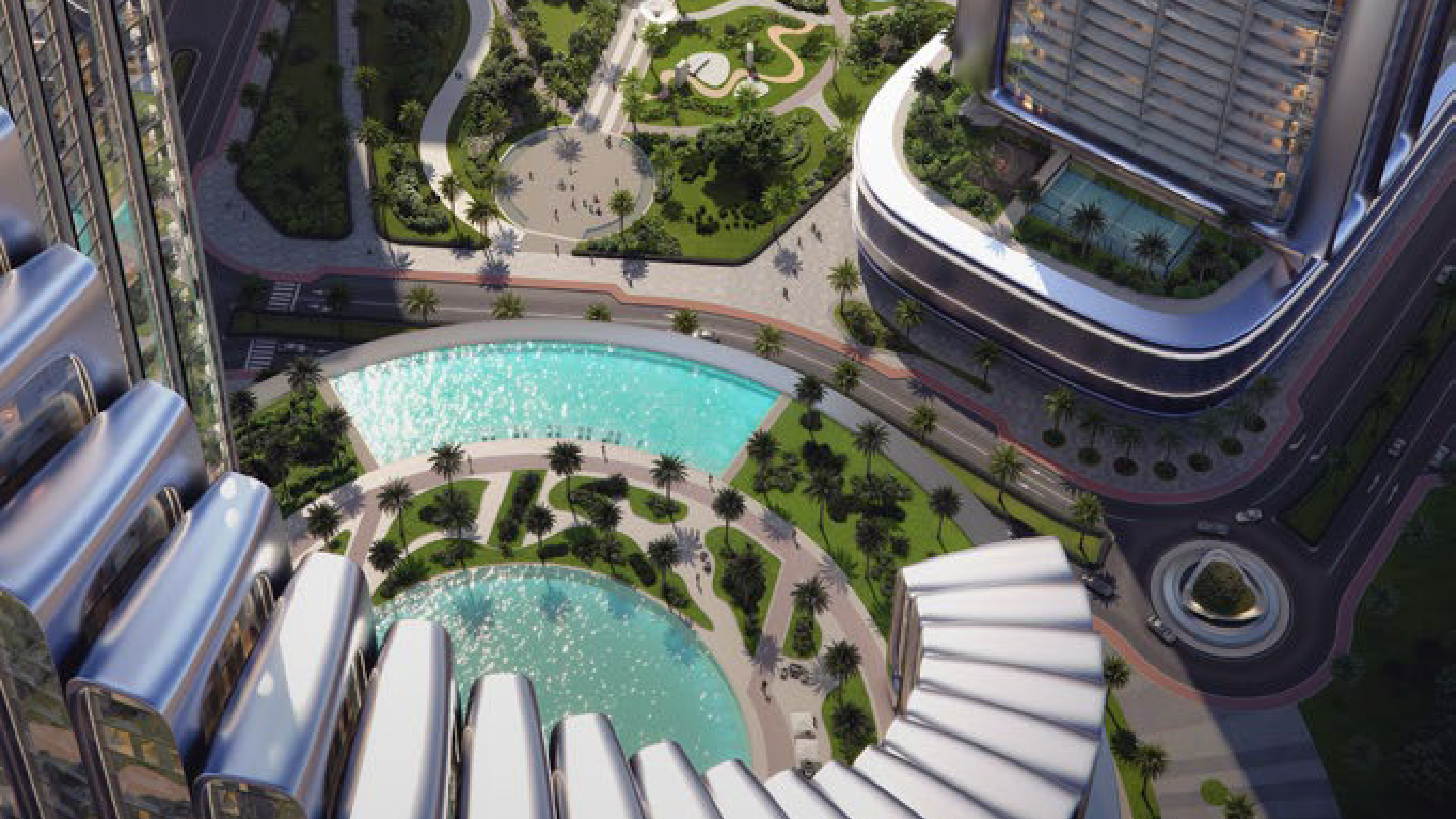 Elevated resort-style swimming pools designed as tranquil retreats, offering city views, landscaped surroundings, and a relaxed atmosphere for families and everyday leisure.